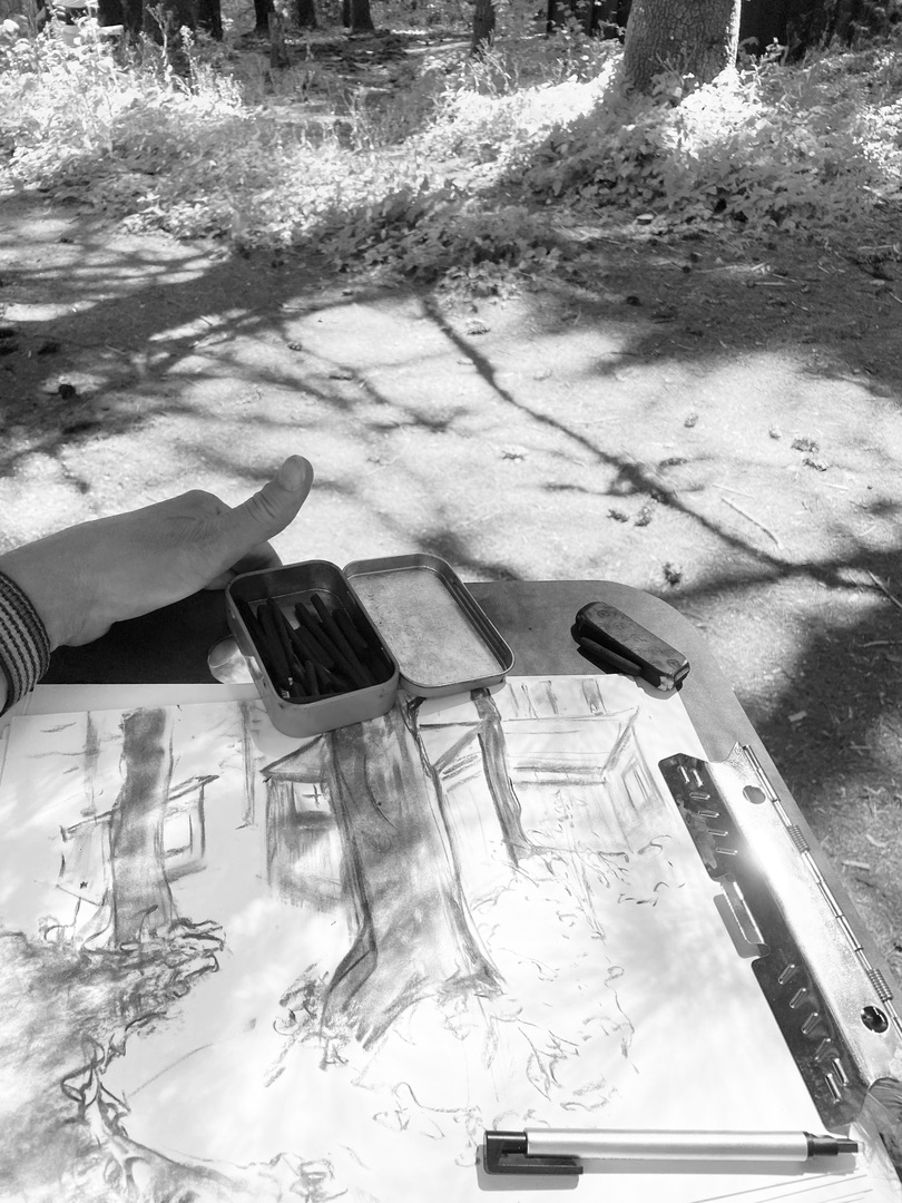 Drawing on the spot obliges me to look intensely and sketch quickly. I catch what I can. Definitely not worrying about composition.