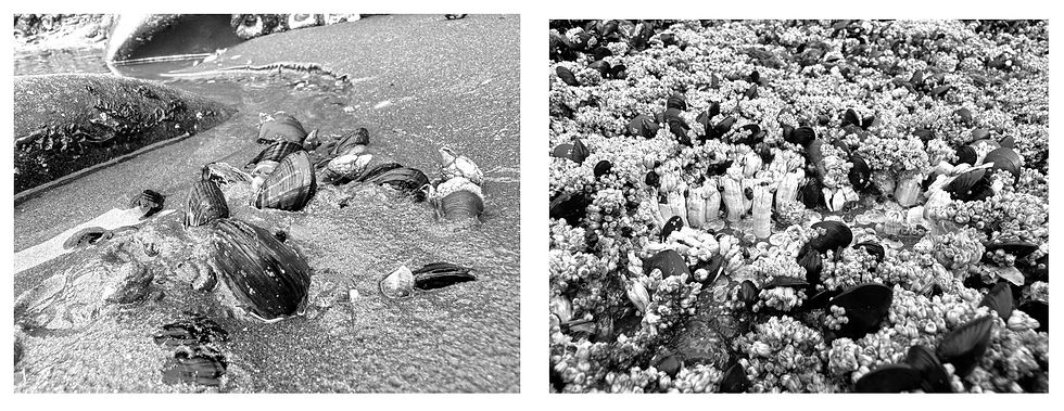 On this visit, Kalaloch Beach 4's tide pools and rocks teemed with barnacles, sea anemones, crabs, mussels, and sea stars. But the beach suggested much more than textures. Tiny passages revealed entire landscapes: A spread of sand and shells became whales breaching in the ocean, and a bed of barnacles an otherworldly forest.