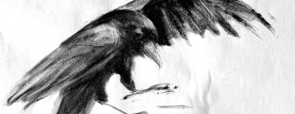 All of the crow's weight is on the one foot. This, together with the shape of the high wing, is the secret to the pose. The possibilities for what I can have him do next are endless.